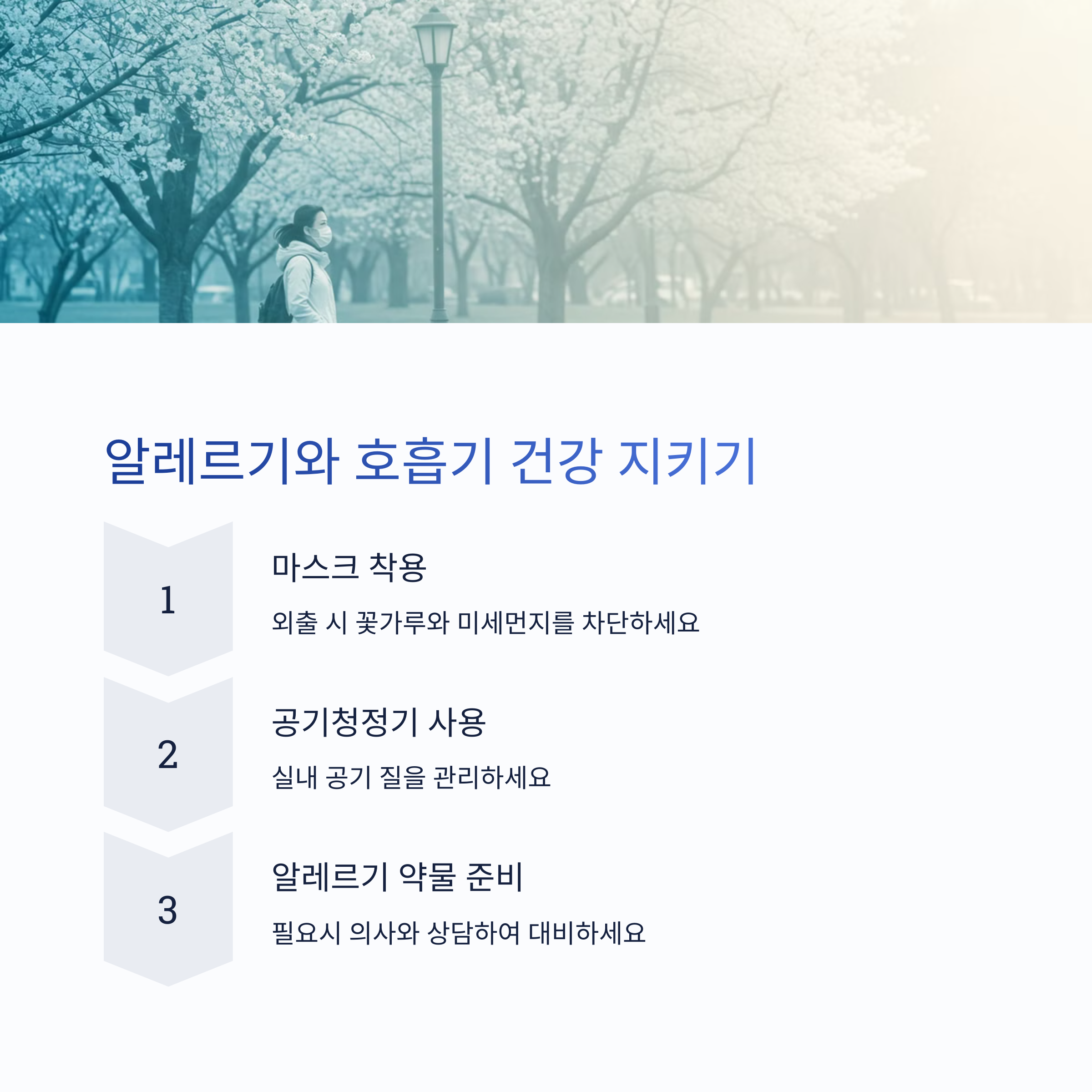 외출 시 마스크 착용, 귀가 후 손과 얼굴 씻기, 실내 공기 질 관리 등을 통해 알레르기 유발 물질에 대한 노출을 줄이는 것이 중요합니다.