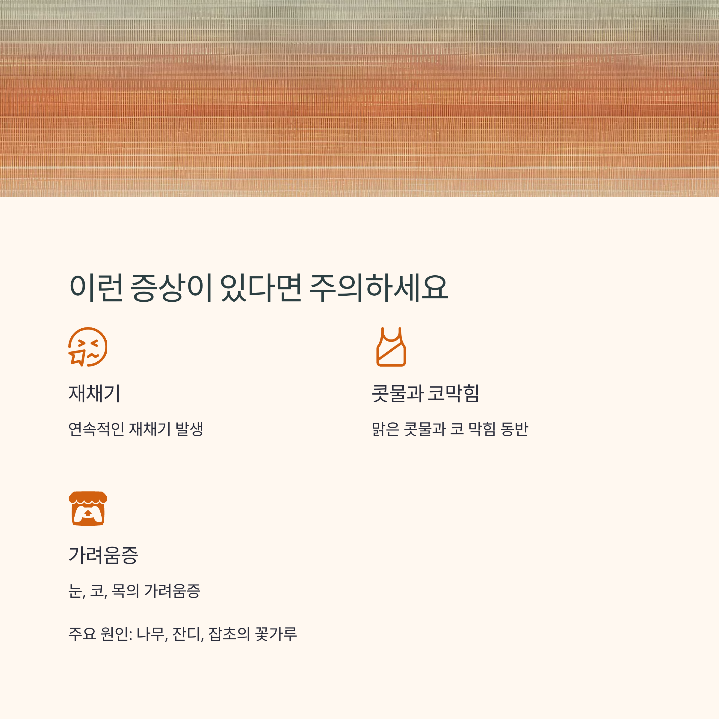 꽃가루 알레르기는 다양한 증상으로 나타나며, 그 심각성도 개인마다 차이가 있습니다.