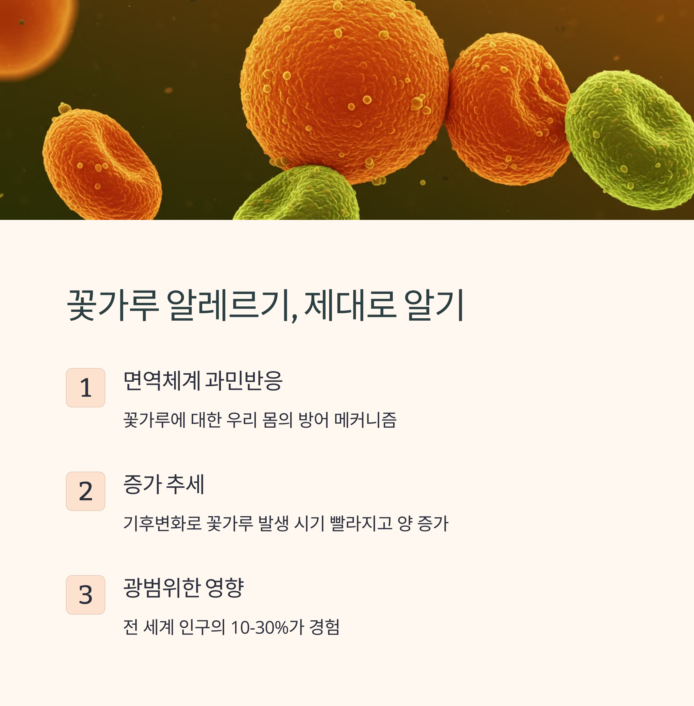 꽃가루 알레르기는 유전적 요인과 환경적 요인이 복합적으로 작용하여 발생하며, 한번 생기면 평생 완전히 사라지기보다는 관리가 필요한 만성 질환인 경우가 많습니다.