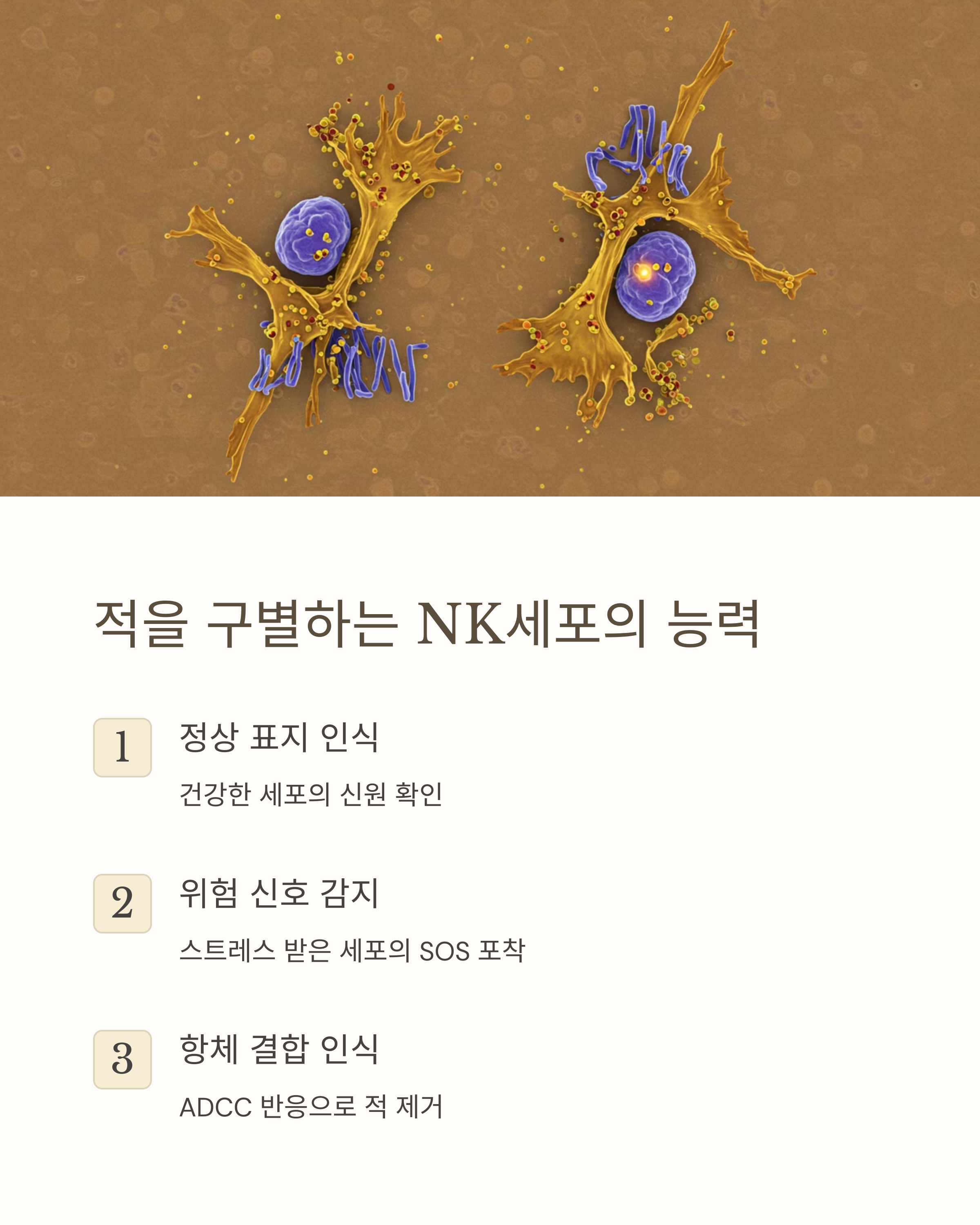 NK세포는 마치 면역계의 '가속페달'과 '브레이크' 역할을 동시에 한다고 볼 수 있어요.
