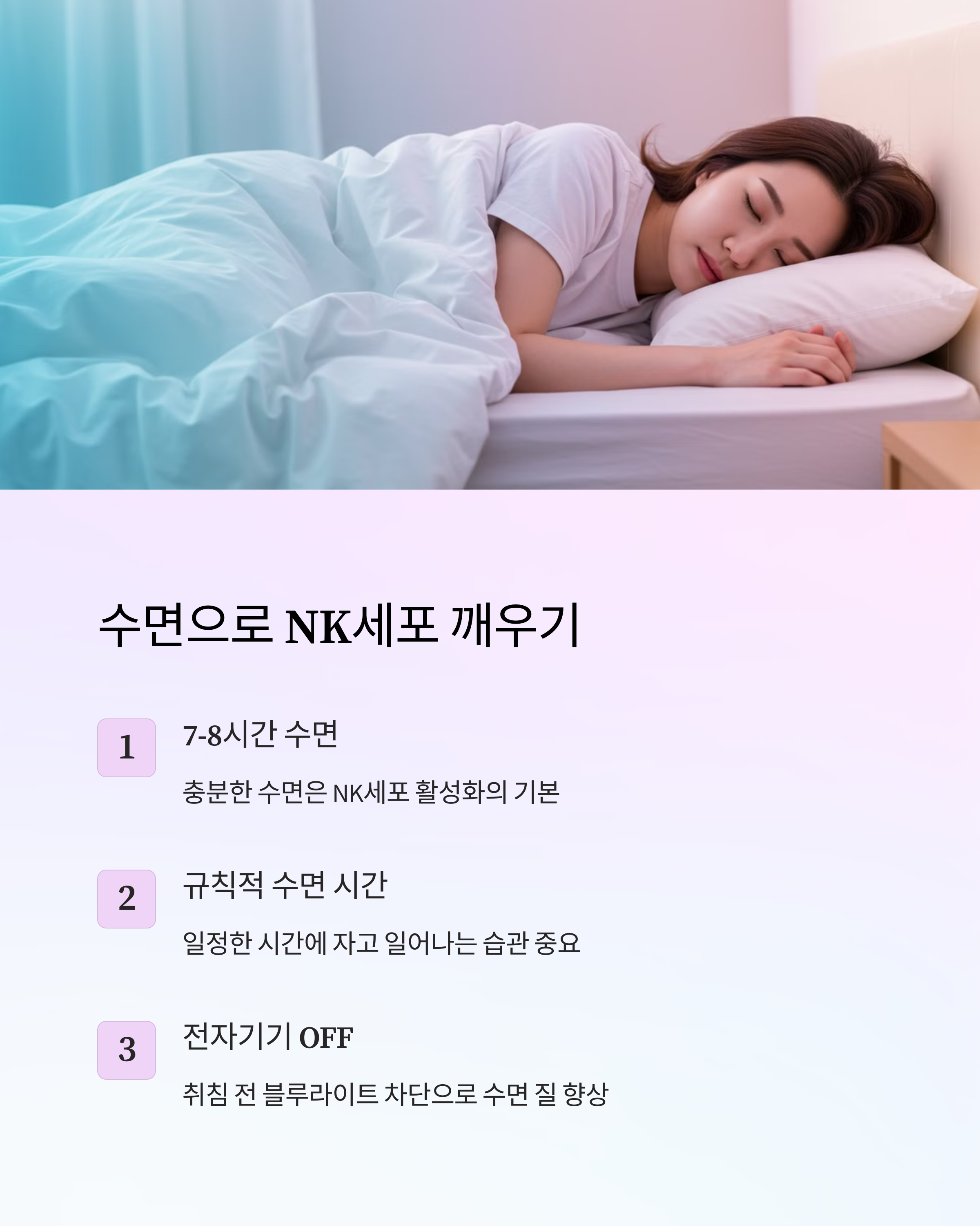 1. 충분한 수면 취하기 수면은 NK세포에게 '슈퍼 충전' 시간이에요!