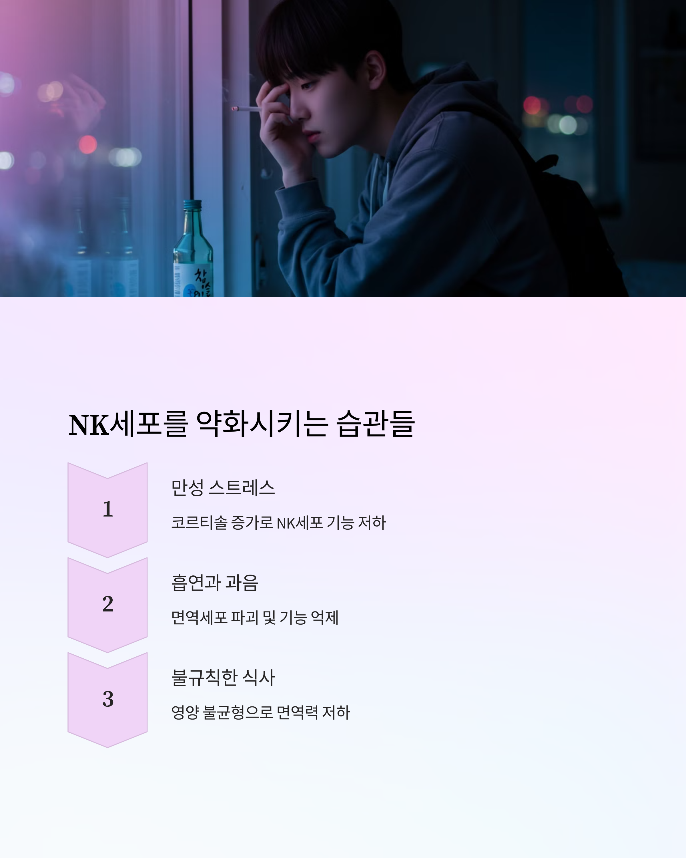 피해야 할 습관 NK세포에 미치는 영향 대안/개선 방법