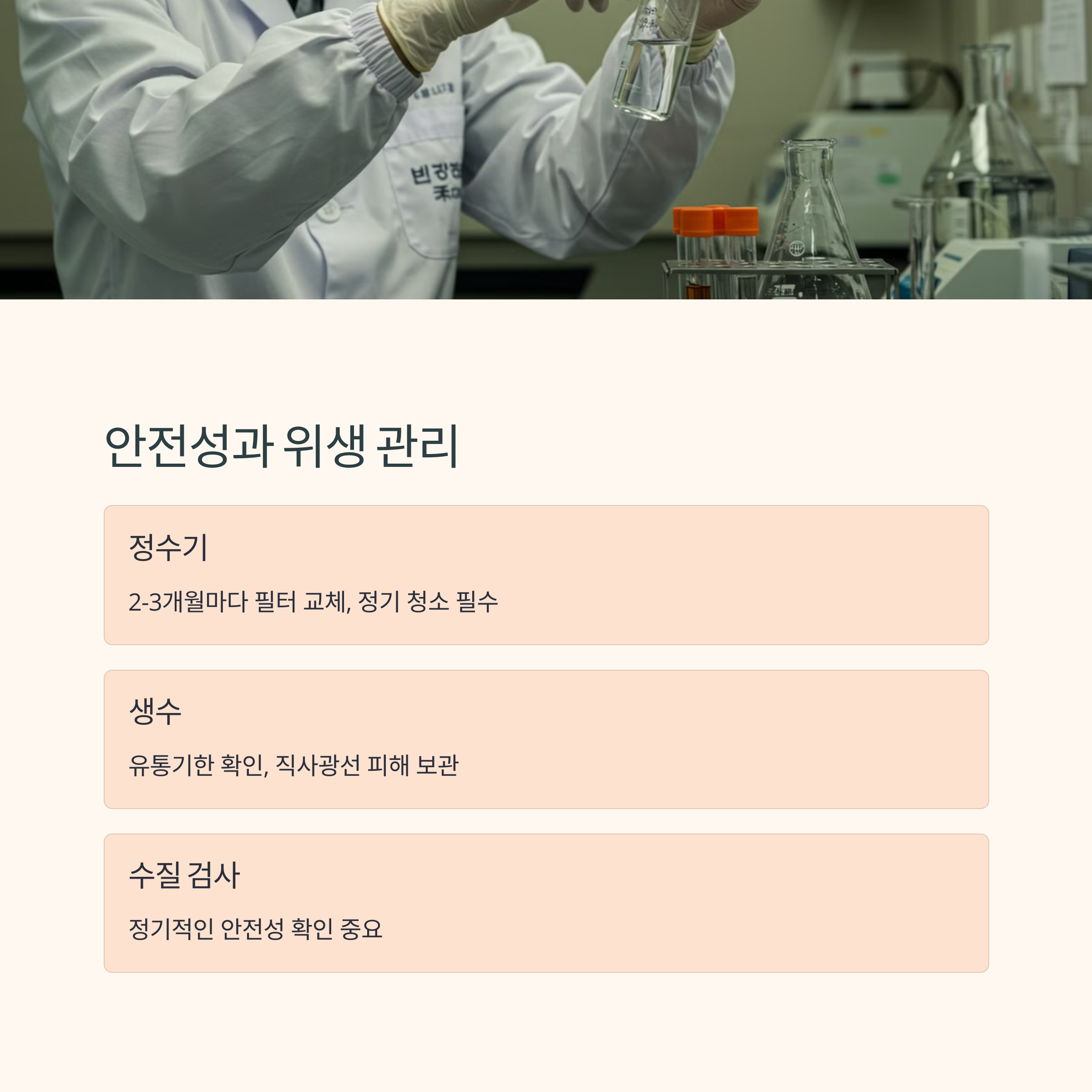 | 맛과 품질 | 미네랄 함량, pH, 불순물 여부 |
