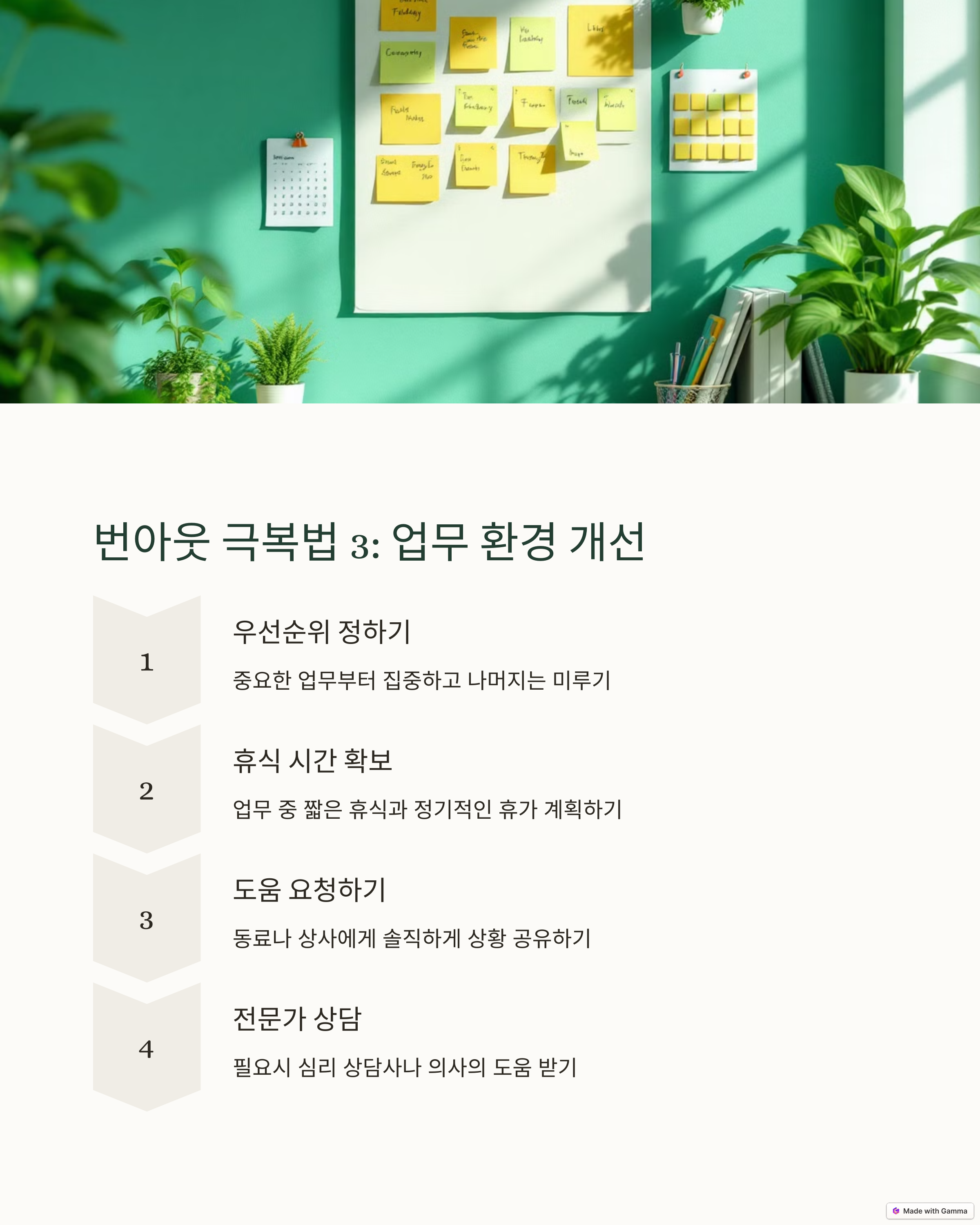 번아웃은 현대 사회에서 점점 더 많은 사람들이 경험하는 심각한 문제입니다. 하지만 적절한 인식과 관리를 통해 예방하고 극복할 수 있습니다.